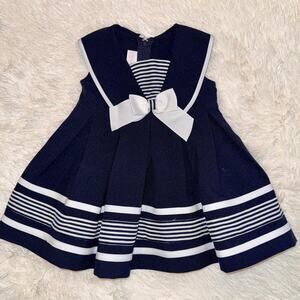 Bonnie Baby Girls Navy Sailor Dress 12M Bow Striped Nautical Holiday Outfit