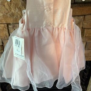 Charming light pink dress with a satin bow. Perfect for formal occasions.