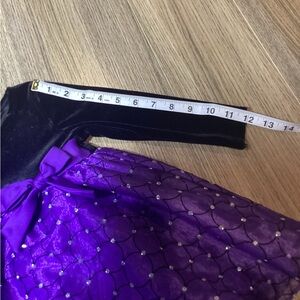 ✨ Adorable Bonnie Baby dress for little girls in a charming purple chiffon skirt with black velvet top.