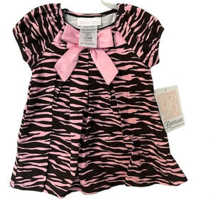 Bonnie Baby Toddler Girl Short Sleeve Pink & Brown Zebra Print Dress Sz 18m NWT