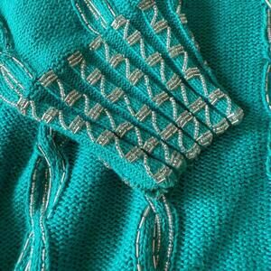 Bonnie Boerer 1988 Beaded Cable Knit Sweater – Teal, Size S/P