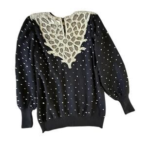 Bonnie Boerer 1989 Black Sweater Small – Beaded Open-Back Statement Knit