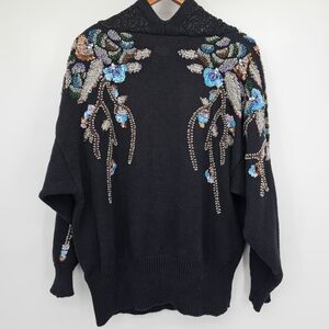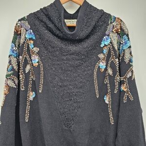 Bonnie Boerer Plus Vintage Drop Sleeve Sequin Floral Slouchy Cozy Sweater 2x