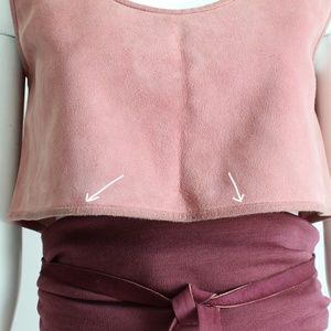 1. Pink suede crop top has spots, wear & tears at shoulder seams (see pic 7) & darkening at hem edges (pic 8)