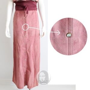 Bonnie Cashin Crop Top, Maxi Skirt + Obi Belt 3pc Set Pink Suede 1970s
