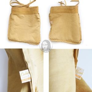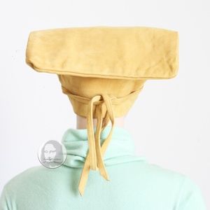 Preowned, vintage 'Bag hat', designed by Bonnie Cashin for Sills, most likely in the 1960s. Made from supple suede leather in a rich butter-creme tan shade, it has skinny cinch straps at the sides and is lined in soft leather.