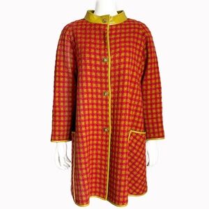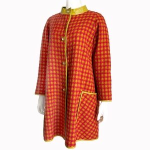Bonnie Cashin for Sills Coat Large Pocket Pink Check Wool Lime Leather Trim 60s