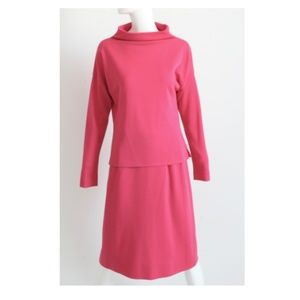 Bonnie Cashin for Sills Suit Pink Wool Knit Raglan Sleeve Top + Skirt Vintage