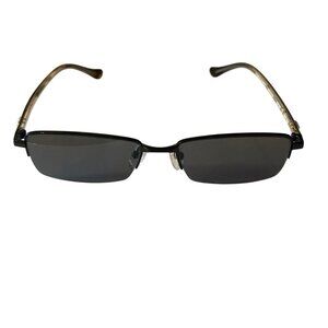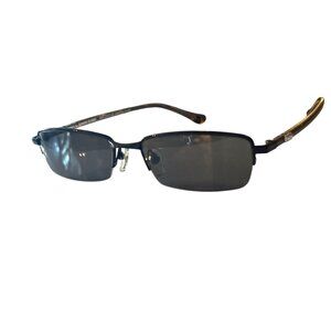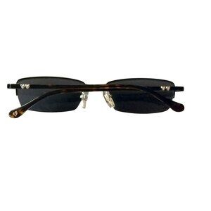 Half rim, stainless steel, rectangular frames paired with acetate arm temples and rhinestone double hearts. Features adjustable, extended nose pads.