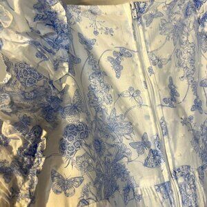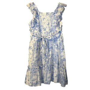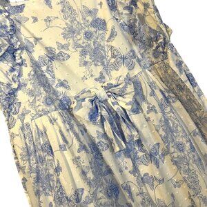 Bonnie Jean Blue & White Floral Butterfly Sleeveless Dress 16 Cottagecore Toile