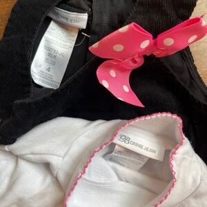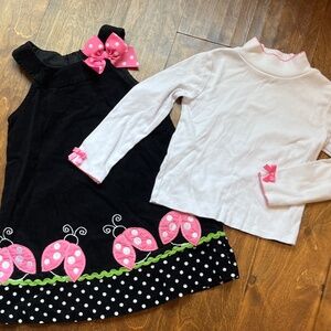 Very sweet jumper with turtleneck underneath. Black Coruroy with Pink Ladybugs. Good condition.