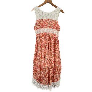 Bonnie Jean Dress High Low Hem Sleeveless Girls 16 Orange Red Floral Lace