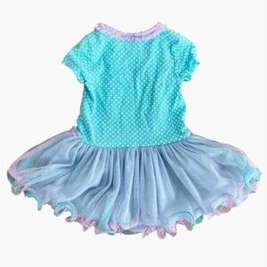 Adorable dress that has a bunny on the front with polka dots. There is gathered tulle around the neck and 3 layers of tulle on the bottom with wire in the edges so the tulle is wavy. Dress has a white slip under tulle