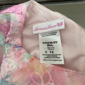 Bonnie Jean Girl size 12 Embroidered Lace sleeveless bow Dress lined Pink