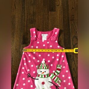 Bonnie Jean Girls 4/4T Pink Fleece Jumper with Polka Dots & Snowman Appliqué