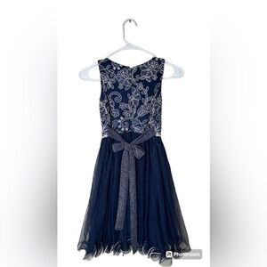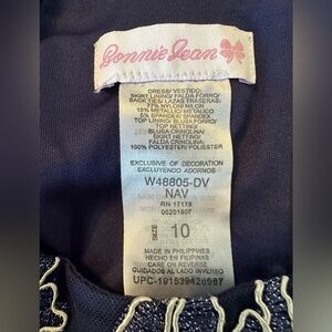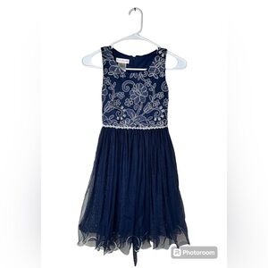 Bonnie Jean Girls Beautiful Floral Sparkly Dress Size 10 Navy & Ivory