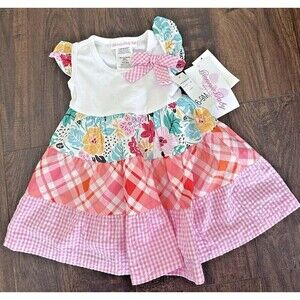 Bonnie Jean Girls Dress Flutter Sleeve Knit Mixed Tiered Poplin Multi 6-9 Months