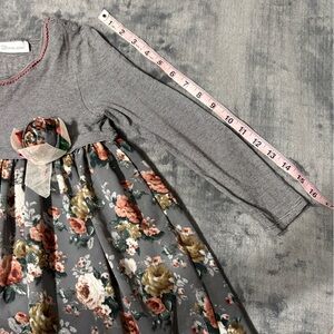 Super adorable girl’s dress with gray top and vibrant floral pattern bottom. Perfect for casual outings. Long sleeves, lined and longer length dress! Perfect for Fall! Listing as a size 5/6, but, please check measurements in photos for proper fit. Excellent Condition!