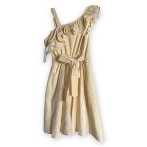 Bonnie Jean Girls Dress Size 12 Yellow Ruffle Seersucker One Shoulder Easter NEW