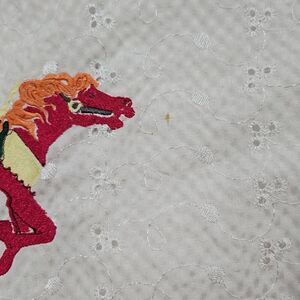 Bonnie Jean Girls Dress Carnival Merry Go Round Embroidered Horses With Pink Bow