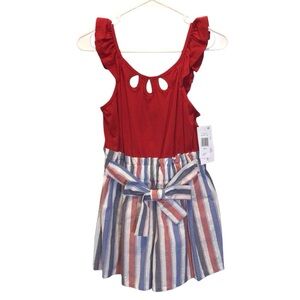 Bonnie Jean Girls Red, White & Blue Cut-Out Paperbag Romper Size 16. New with tags. From smoke free home.