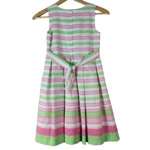 Bonnie Jean Girls Stripe Dress Pink Green SZ 10 Zip Wide Pleat Sleeveless Easter