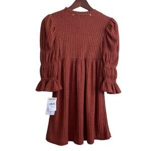 Bonnie Jean Girls Sweater Dress 12 Rust Metallic Thread Matching Necklace Tiered