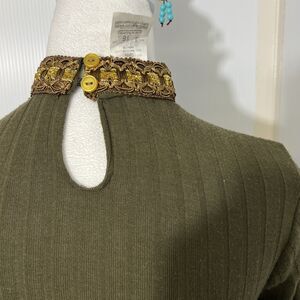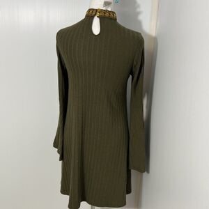 Bonnie Jean Junior Girls Size 16 Olive Ribbed Knit Bell Sleeve Dress Choker Neck