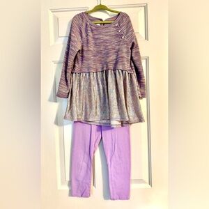 Bonnie Jean Long Sleeved Space Dyed Foiled Knit Top & Solid Stretch Leggings