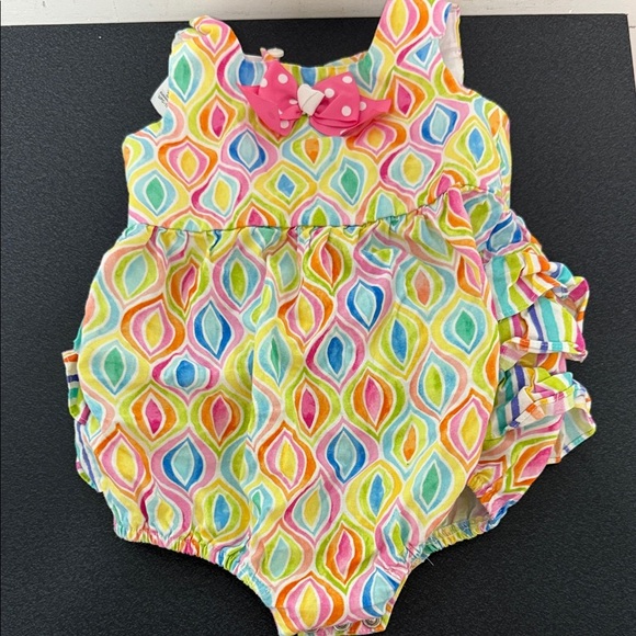 Bonnie Jean Multicolor Baby Romper with Pink Bow