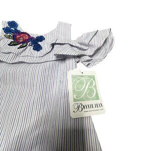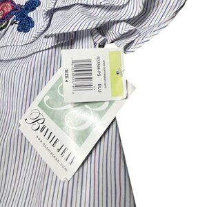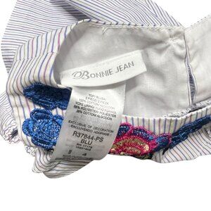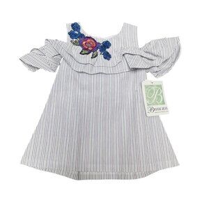 Bonnie Jean Naked Shoulder Dress TOP ONLY Size 4 Striped Floral Embroidery