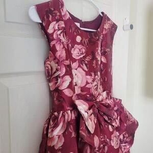 Stunning red floral dress by Bonnie Jean. Featuring a sleeveless design with a scoop neckline, it boasts a fit and flare silhouette that adds elegance and charm. The dress's formal style makes it a standout choice for any special occasion.
