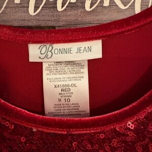 Elegant red dress with sparkling sequins. Ideal for festive occasions.