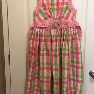 Bonnie Jean Size 14 Dress Pink Green Seersucker