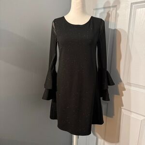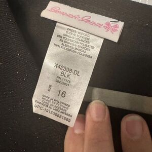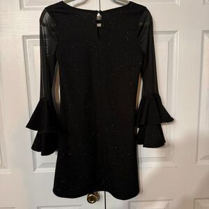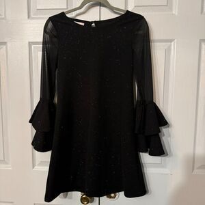 Bonnie Jean Sz 16 Girls Sparkle Black Party Dress with Ruffled Cuff Sheer Detail