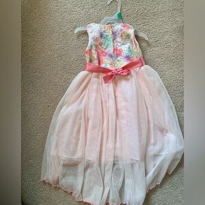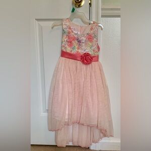 Size 4 dress. High-low skirt. Lace details on bodice.zip up back and tie bow. Excellent condition. No rips or stains. Smoke-free home.