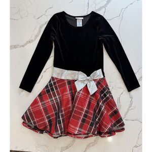 Bonnie Jean Velvet and Plaid Dress Size 14