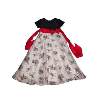 Bonnie Jean Special Occasion dress 12.5. 16" pit to pit. 42" total length from shoulder to hemline. EUC. Velvet top and flowers. Bow has rhinestones in the middle.