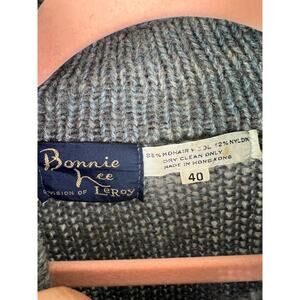 Bonnie Lee Leroy Button Up Cardigan Womens 40 Gray Knit Mohair Wool Nylon Blend