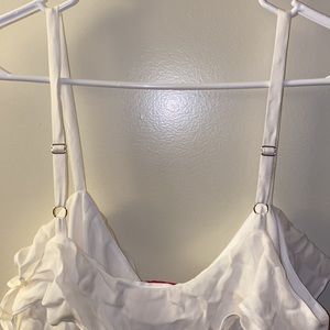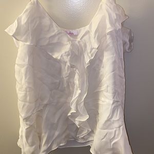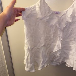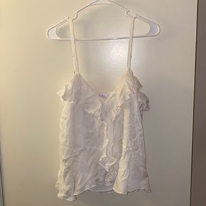 Silk and rayon materials. Ruffle detail and adjustable straps. In excellent used condition. Fully lined. No stains nor rips.
