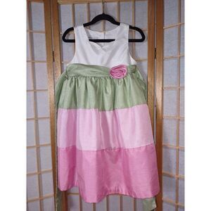 Super cute sleeveless dress from Bonnie Jean. Size 6. Sweetheart collar. Tie back waist. Rosette accent. Fully lined. 100% polyester. Machine washable. Made ion El Salvadore. Excellent condition. Nonsmoking home.
