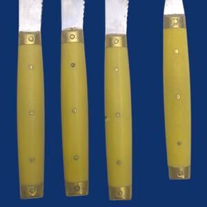 Bonniers France 3 Dinner Knives & 1 Table Spoon Ivory Tone and Brass Handles