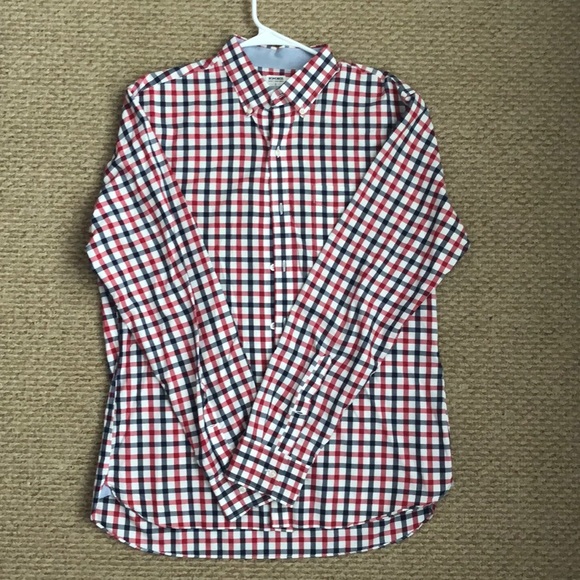 Red, navy & white checkerboard button down long sleeve shirt. Bonobos men’s size large slim fit. Excellent condition! No rips/tears/stains. Pet/Smoke free home.