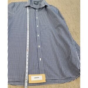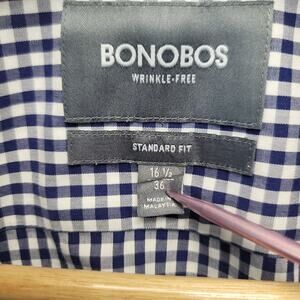 Bonobos Button Up Shirt Mens 16.5 36 Standard Fit Navy Blue White Gingham Check