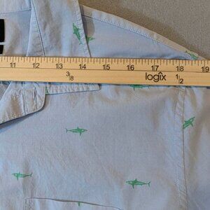 Bonobos Button Up Shirt Mens Large Blue AOP Shark Long Sleeve Slim Fit