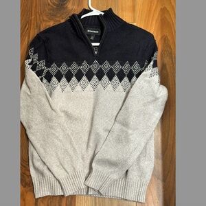 Bonobos Fair Isle half-zip sweater in charcoal diamond fair isle and slim XS