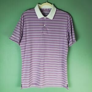 Bonobos Golf Men's Slim Fit Purple White Striped Polo Short Sleeve Collared Shirt Stretch Size Medium