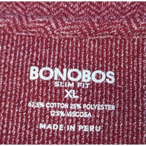Bonobos Henley Shirt Men XL Maroon Cotton Blend Long Sleeve Herringbone Slim Fit