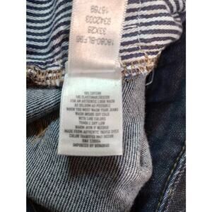 Approximate flat measurements: Waist side to side 17 in, Rise 10 in, Inseam 27 in, Bottom hem/leg opening 8 in