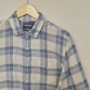 This Linen blend shirt is in good used condition with minimal signs of wear. Sized Standard Fit Medium. Thanks for looking! Measurements (in inches): Shoulder to cuff: 26 Bottom of collar to shirt on back: 29 Armpit to armpit: 22 *I offer great discounts on bundles